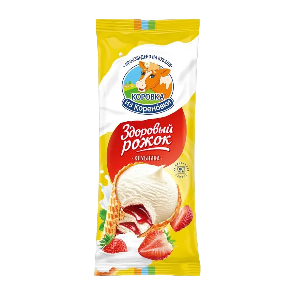 Мороженое рожок Коровка из Кореновки Клубника сливочный 120г