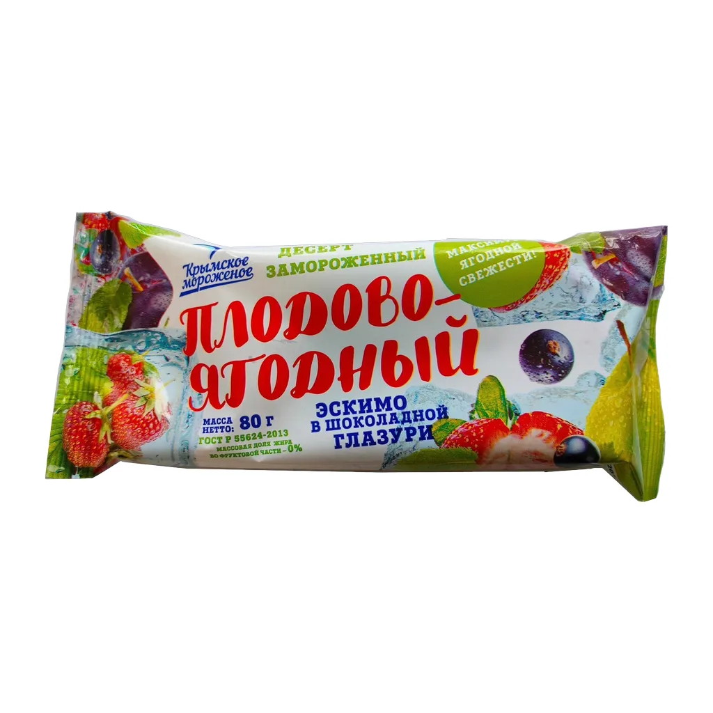 Мороженое Крымское десерт плодово-ягодный в шоколадной глазури 80г