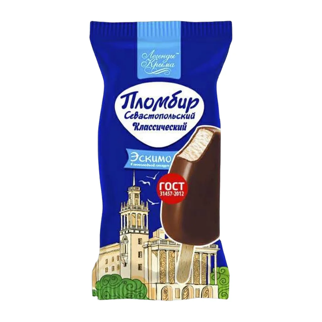 Мороженое Легенды Крыма Севастопольский классический пломбир шоколадная глазурь БЗМЖ 70г