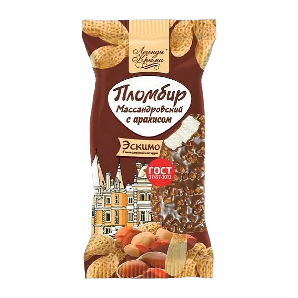 Мороженое Легенды Крыма пломбир Массандровский с арахисом эскимо в шоколадной глазури 75г