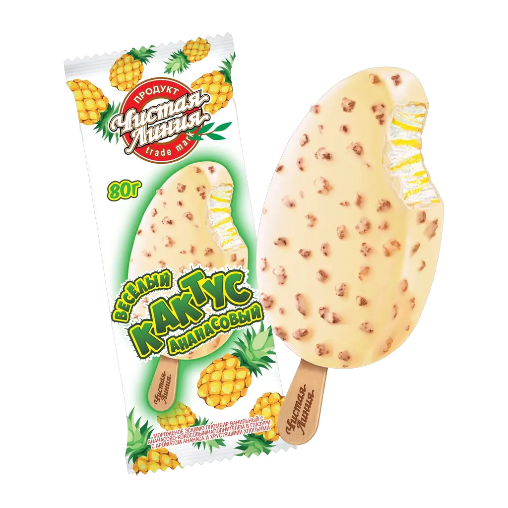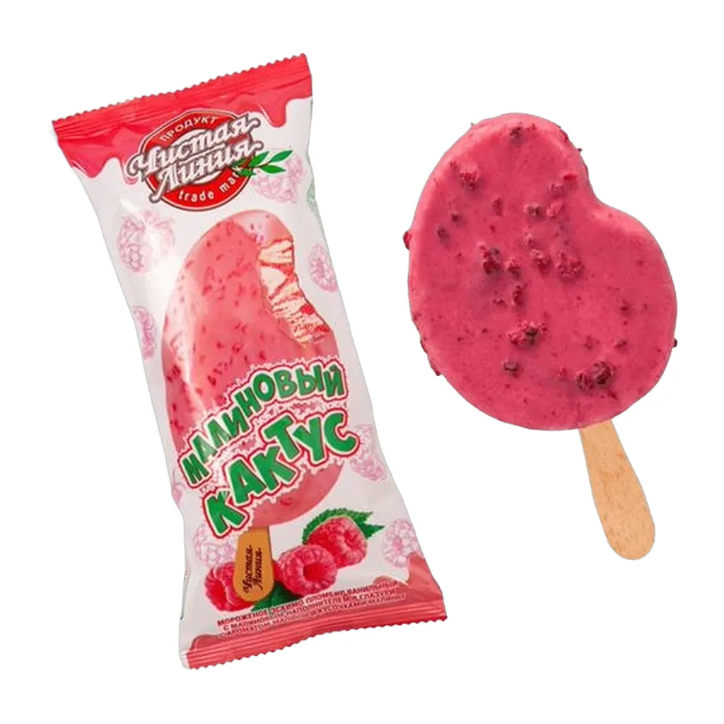 Мороженое пломбир Чистая Линия Веселый Кактус ванильный с малиной эскимо 12% 80г