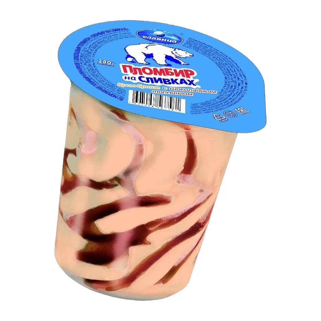 Мороженое Славица пломбир на сливках крем-брюле с шоколадным топпингом 280г