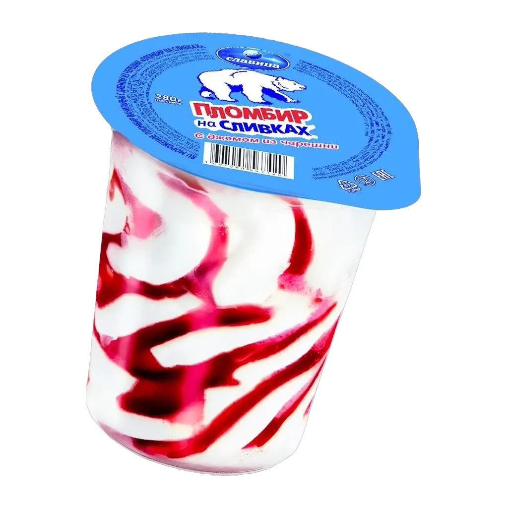 Мороженое Славица пломбир на сливках ванильный с джемом из черешни 280г