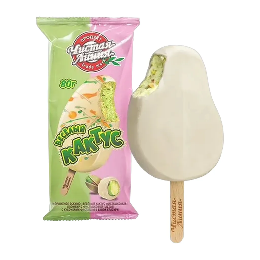 Пломбир Чистая Линия Фисташковый кактус в белой глазури 80г