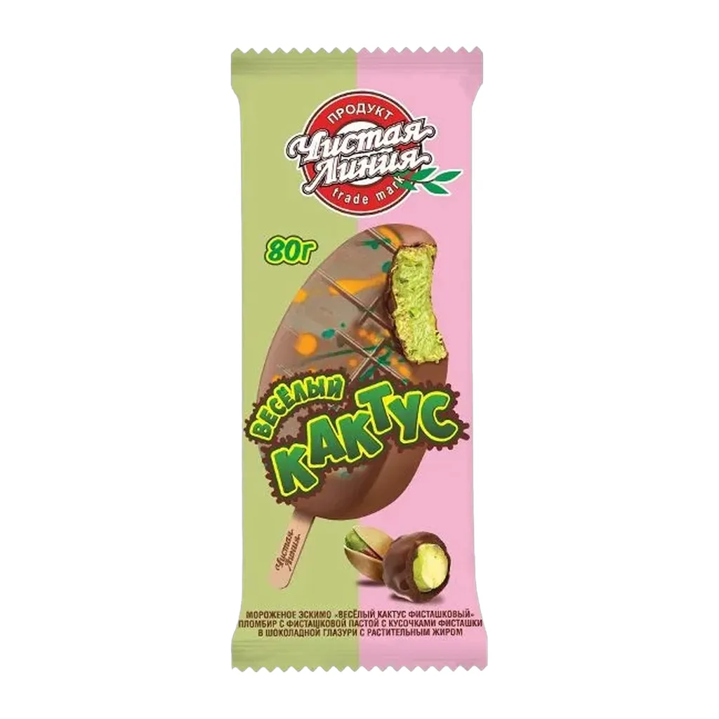Эскимо Чистая Линия фисташковый в шоколадной глазури Веселый Кактус 80г