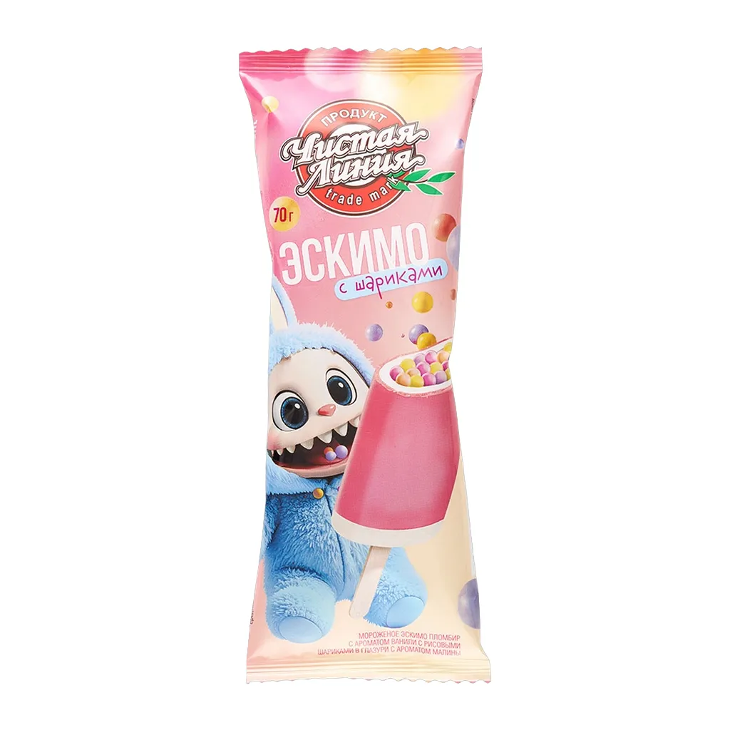 Эскимо Чистая линия пломбир с рисовыми шариками в малиновой глазури 70г