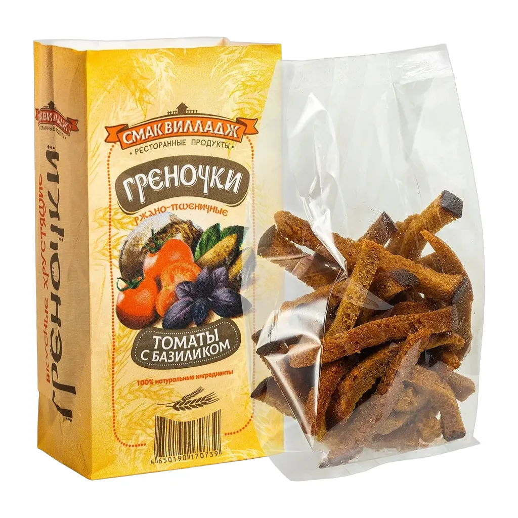 Гренки ржано-пшеничные Смак Вилладж с томатом и базиликом 100г