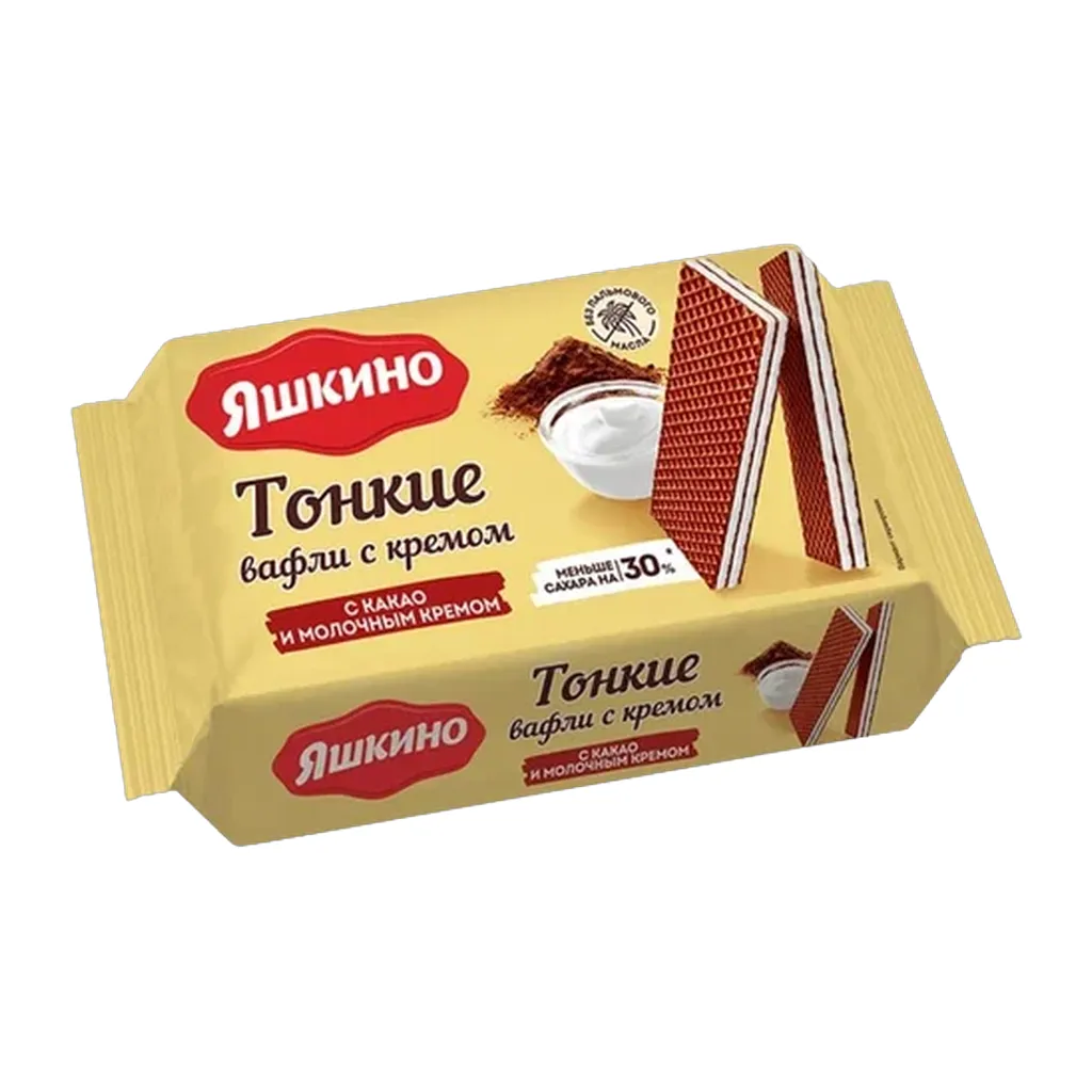 Вафли Яшкино тонкие с какао и молочным кремом 144г