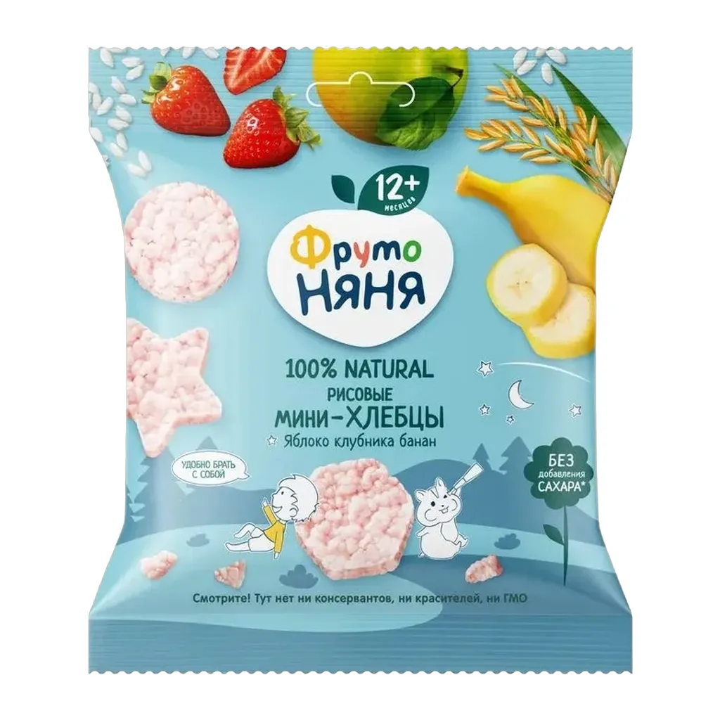Мини-хлебцы рисовые ФрутоНяня яблоко, клубника, банан 30г