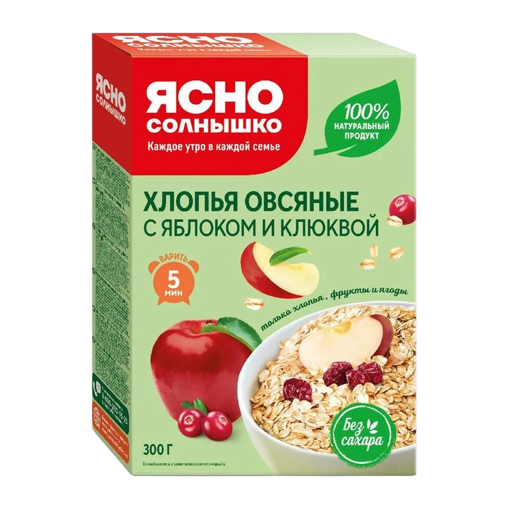 Хлопья овсяные Ясно солнышко клюква и яблоко 300г