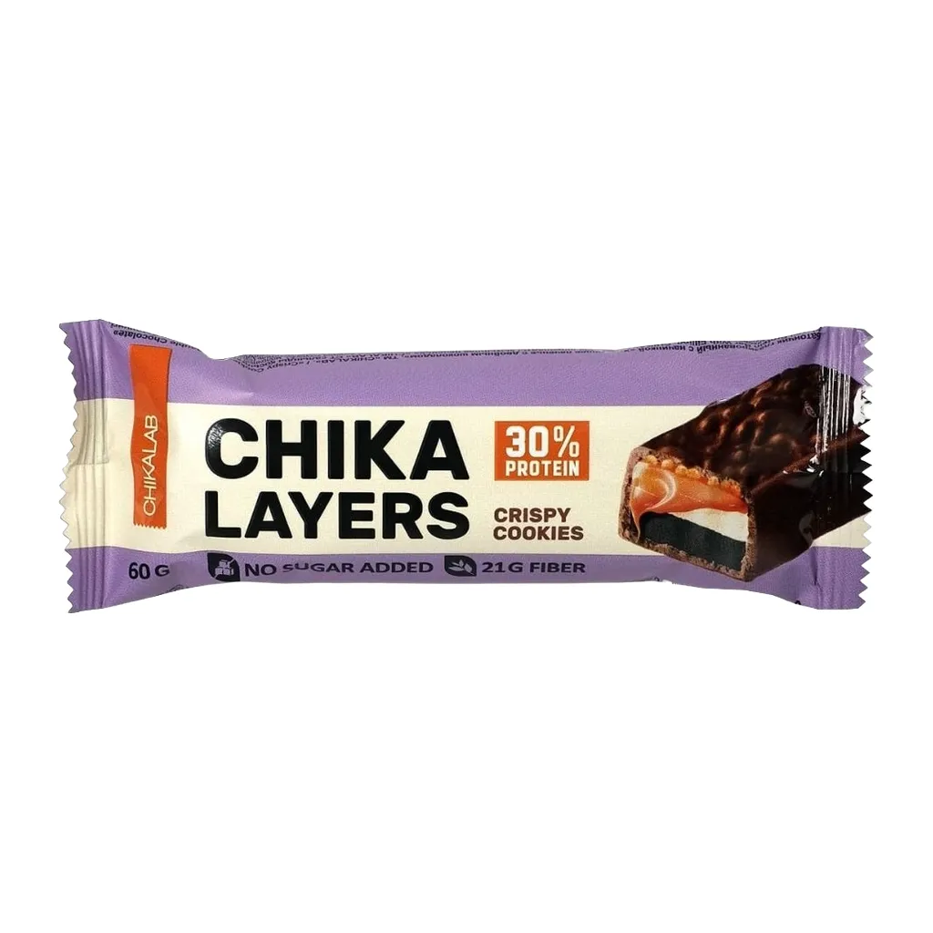 Протеиновые батончики Chika Layers в шоколаде без сахара Хрустящее печенье с двойным шоколадом 60г