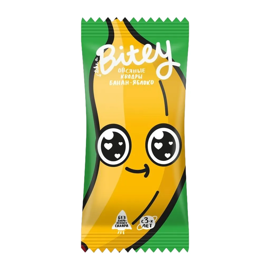 Овсяно-фруктовый батончик Квадры Bitey яблоко-банан с витаминами без сахара 30г