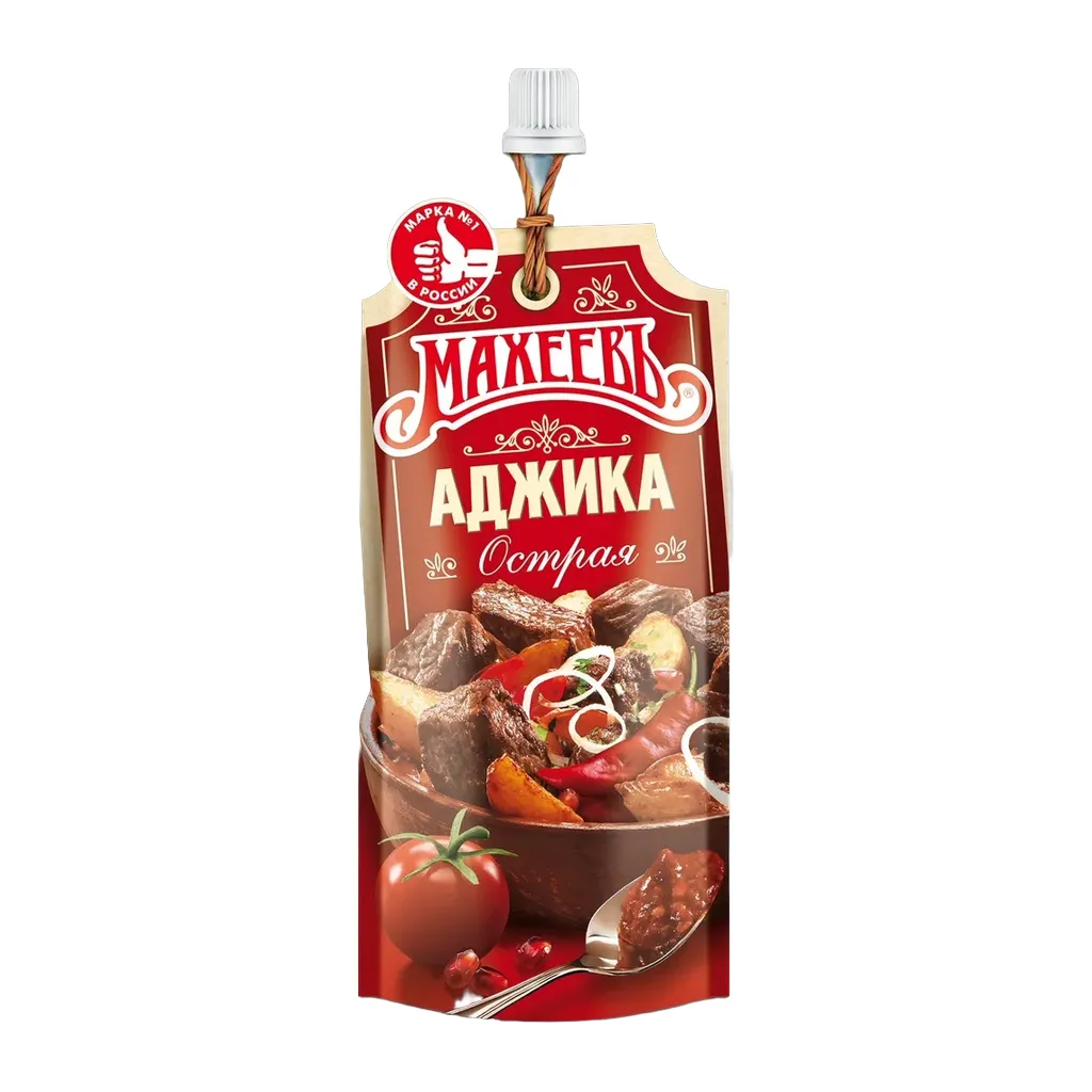 Аджика Махеев — пряная приправа с острым вкусом и ароматом душистых трав и специй к мясным блюдам.