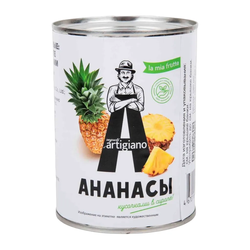 Ананасы Artigiano в сиропе резанные кусочками 580г