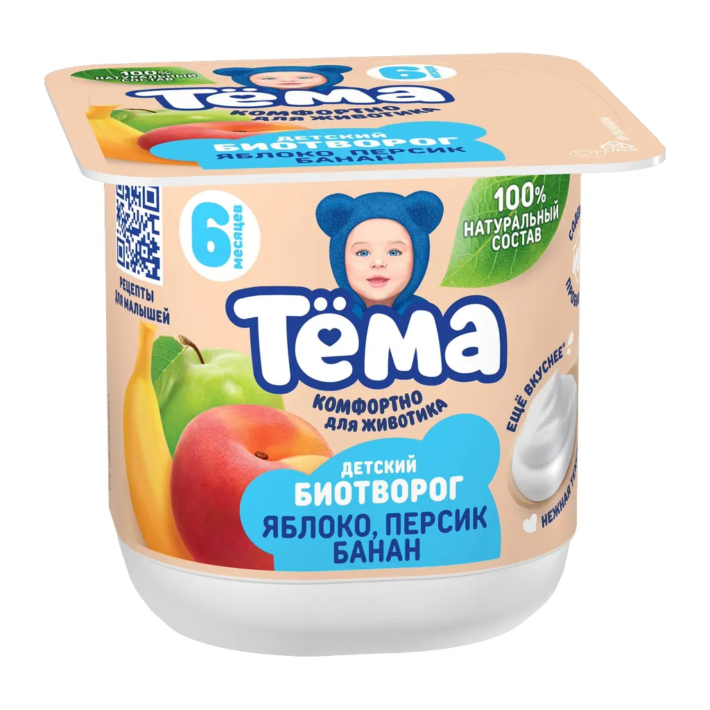 Биотворог Тёма с яблоком персиком и бананом 4% 95г