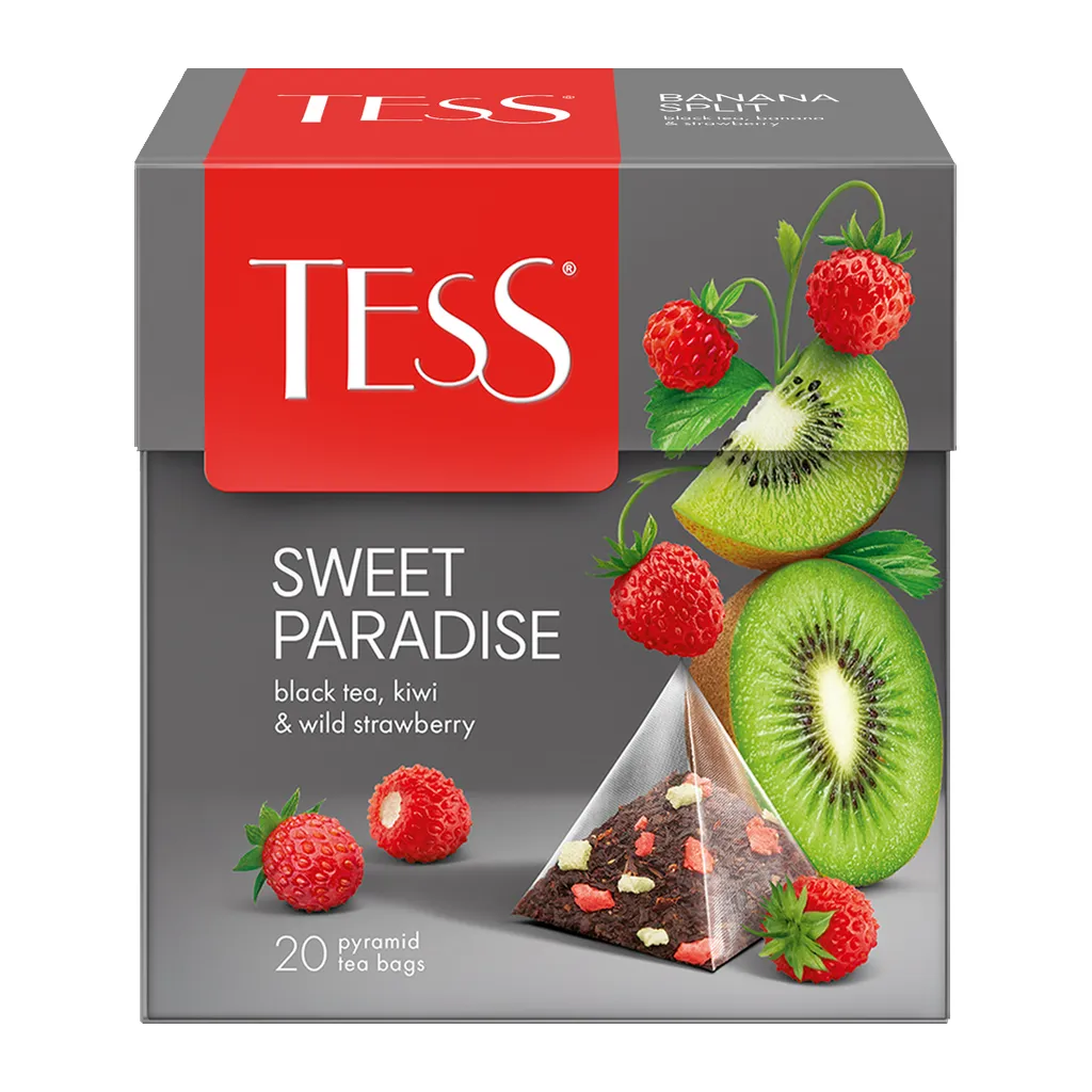 Чай в пирамидках черный Tess Sweet Paradise (Свит Паредайс) предлагает вам незабываемое наслаждение ароматом и вкусом высококачественного чая. В каждой упаковке содержится 20 пирамидок, наполненных отборным чайным листом. Этот чай создан для тех, кто ценит изысканные напитки и хочет испытать истинное удовольствие от чаепития.