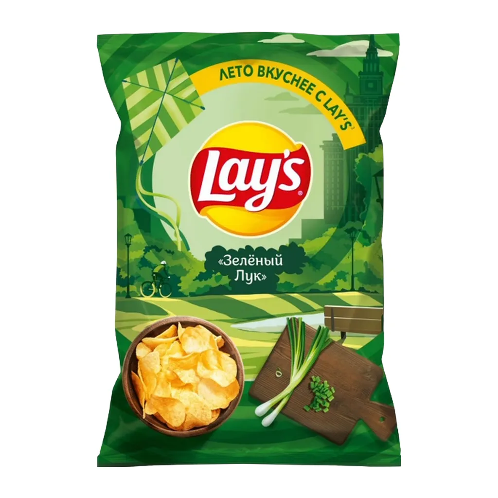 Яркий вкус аппетитного зеленого лучка и хрустящие картофельные чипсы Лейс — это праздник, который всегда с тобой!