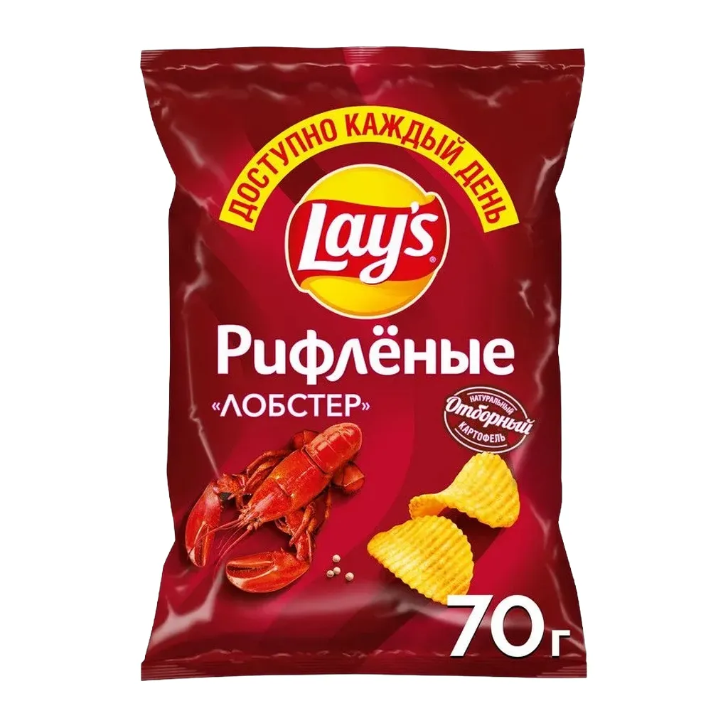 Lay's — чипсы, каждая пачка которых изготовлена из специально отобранного картофеля и соответствует самым высоким стандартам качества. Lay's были созданы, чтобы вызвать улыбку на лице каждого человека, поэтому ими так приятно делиться с друзьями. Рифленая текстура золотистой отборной картошки, насыщенный вкус лобстера — вот, что нужно в моментах истинного наслаждения! Попробовав однажды эти рифленые чипсы Лейс, вы никогда не сможете забыть их яркий вкус. Каждый день вкуснее с Lay's! - 100% натуральный картофель - Качественные ингредиенты - Насыщенный вкус лобстера