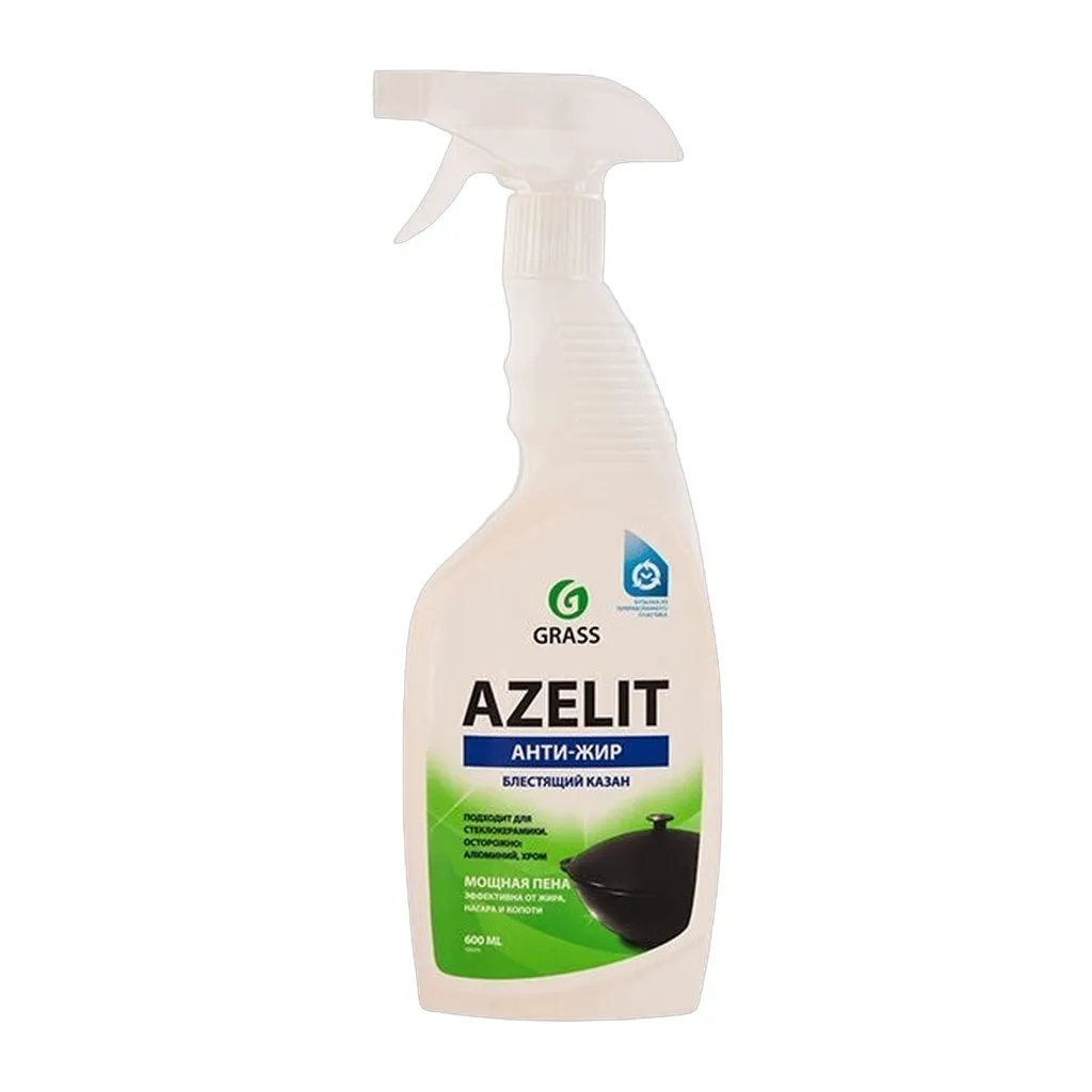 AZELIT - АНТИЖИРСпрей для очистки кухни от жира Azelit, средство для удаления жира, 600 мл от GRASS - ваше идеальное решение для устранения жира и сажи на вашей кухне. Специально разработанный компанией ГРАСС, этот спрей для очистки кухни от жира Азелит предназначен для эффективной очистки различных кухонных приборов и поверхностей.Этот бытовой химикат является превосходным средством, эффективно удаляющим жир, сажу и другие трудно удаляемые пятна со сковородок, плит, коптильных камер, фритюрниц, грилей, духовок, микроволновых печей и многого другого.