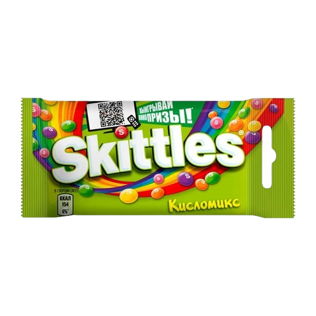Жевательные конфеты Skittles Кисломикс — драже в хрустящей разноцветной глазури с яркими фруктовыми начинками.