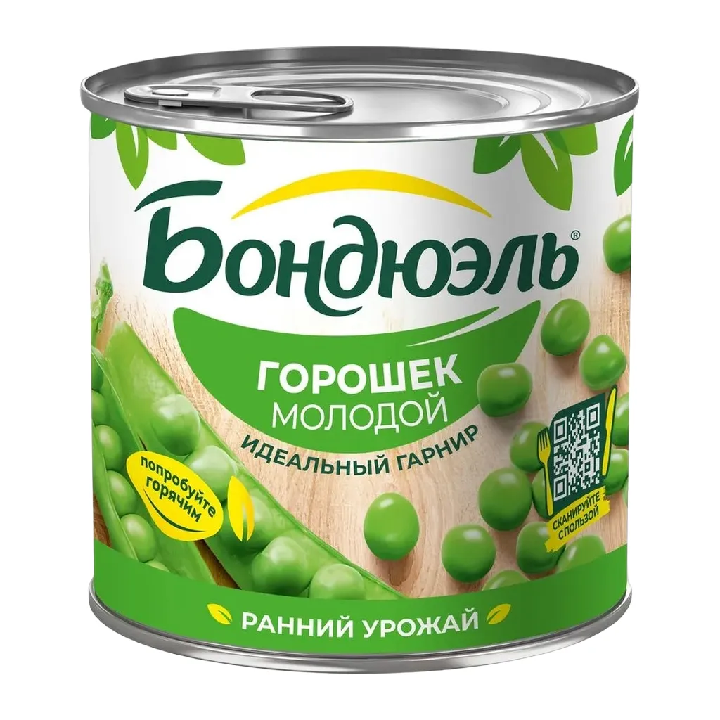 Молодой горошек - юный, нежный, сочный и свежий, как самое начало лето, когда горошек можно есть прямо с грядки. Бондюэль сохранил для вас магию лета! Мы специально отобрали особый сорт горошка, чтобы вы могли наслаждаться его восхитительным вкусом в любое время года. Молодой горошек настолько хорош, что даже не требует добавлений - он идеальное решение для перекуса.