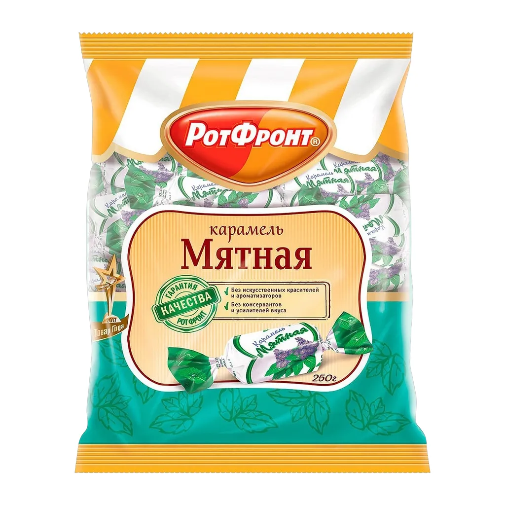 Карамель Мятная от фабрики Рот Фронт - это освежающие леденцы с насыщенным вкусом сладкой мяты. Отлично освежают, хороши для бодрости. Карамельки скрасят любую долгую дорогу и отлично дополнят горячий чай из термоса. Конфеты РотФронт идеально подойдут для семейных чаепитий, дружеских посиделок или офисных перерывов. Карамель Мятная станет отличным сладким угощением для детей и взрослых. Не упустите возможность порадовать себя и своих близких этим замечательным лакомством. Попробуйте карамель Рот Фронт и наслаждайтесь ее восхитительным вкусом!