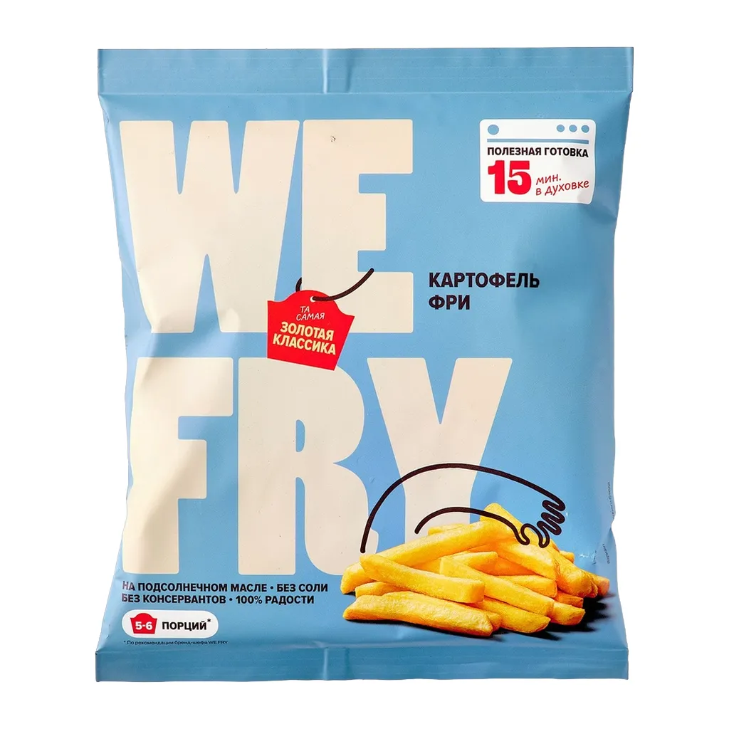 WE FRY — золотая классика фри! Та самая ароматная и хрустящая картошка, к которой тянется рука :) Мы собираем фермерский картофель по всей России и выбираем специальные сорта именно для фри. Внутри — 100% радости и 100% натуральный картофель, обжаренный на качественном подсолнечном масле. Без соли, без сахара, без консервантов. Чистый состав, ничего лишнего. Наш секретный рецепт: готовьте в духовке, без фритюра. 15 минут — и фри готов к столу. Горячо любимый, с идеальной хрустящей корочкой, он отлично подойдет к домашним бургерам, стейкам, овощным салатам и любимым соусам.