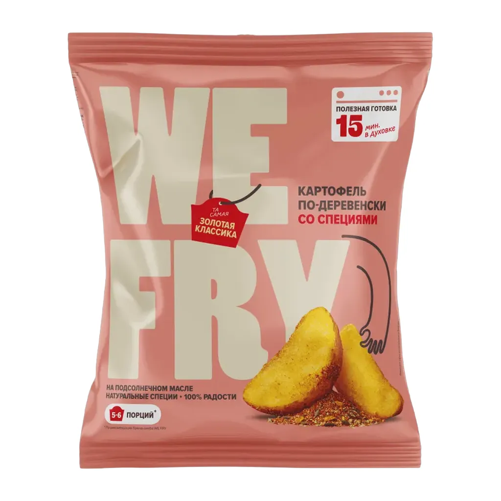 Мы собираем фермерский картофель по всей России и выбираем специальные сорта именно для фри. Внутри — 100% радости и 100% натуральный картофель, обжаренный на качественном подсолнечном масле. А еще щепотка красной паприки, черного и кайенского перцев, тмина, лука и чеснока. Насыщенный, но деликатный вкус, без остроты.