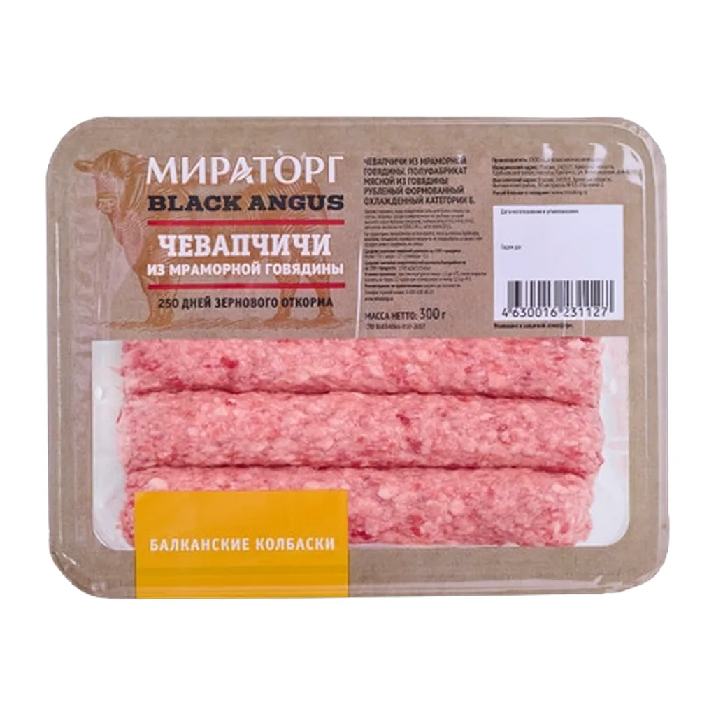 Колбаски из говядины Мираторг Чевапчичи производятся с соблюдением строгих технологических норм. Сочные колбаски можно приготовить на мангале, в духовом шкафу или просто пожарить на сковороде с овощами. Готовое блюдо прекрасно сочетается со свежими овощами, салатами и зеленью.