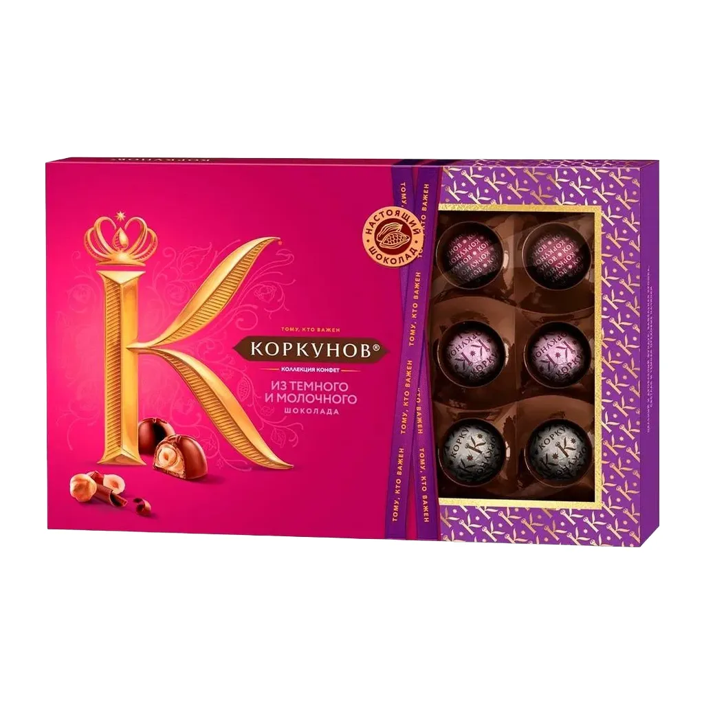 Конфеты "Коркунов" в темном и молочном шоколаде ореховая коллекция, 165 грИзысканный и необычайно вкусный комплимент для ваших коллег и партнеров, а также утонченный подарок для тех, кто вам особенно важен. Удивительная и гармоничная композиция, составленная из разнообразных сочетаний настоящего шоколада, карамелизированного грецкого ореха, миндаля и фундука, а также темной ореховой начинки со вкусом кленового сиропа и апельсина.Этот продукт станет отличным выбором для любителей сладостей, украсит любой праздник и создаст праздничное настроение!