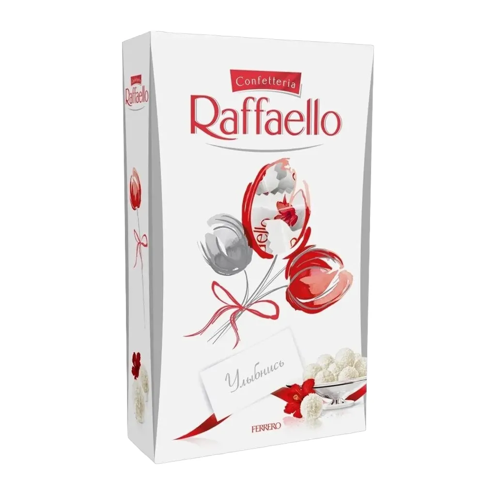 Уникальный рецепт Raffaello - это гармония ингредиентов, отобранных с особой заботой: сладкий белый миндаль и отборный кокосовый орех с тропических островов придают непередаваемую нежность вкусу. Raffaello - истинное удовольствие. Конфеты с миндалем в кокосовой обсыпке. Большой сюрприз в небольшой упаковке.