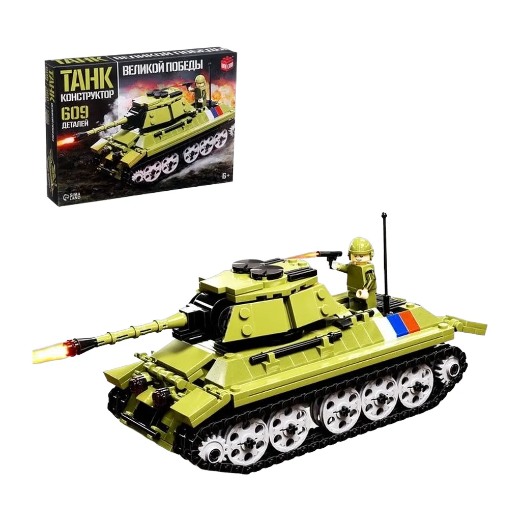Конструктор «Танк Великой Победы», подвижные элементы, 609 деталейКонструктор «Танк Великой Победы» — увлекательный набор для детей и подростков. Он позволяет создать реалистичную модель танка, погрузит ребёнка в историческую атмосферу и поможет развить важные навыки.Особенности:Количество деталей: 609 штук.Высокое качество материалов: детали изготовлены из прочного пластика, полностью безопасного для детей.Историческая тематика: сборка модели танка помогает детям узнать больше о Великой Отечественной войне.Инструкция в комплекте: пошаговая инструкция делает сборку понятной и увлекательной.Детали легко соединяются: это позволяет ребёнку сосредоточиться на процессе и получить удовольствие от завершённой работы.Играем с пользойКонструктор «Танк Великой Победы» — это не только интересное времяпрепровождение, но и возможность для детей познакомиться с историей служебной техники. Также он поспособствует развитию мелкой моторики рук, координации движений концентрации внимания.