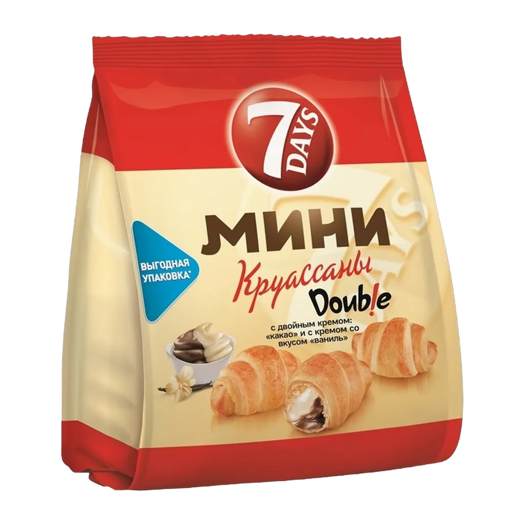 Круассаны "7DAYS" - готовая к употреблению выпечка из нежного теста с восхитительными кремовыми и джемовыми начинками. Мини-круассаны "7DAYS" - это много маленьких вкусных круассанов в одной упаковке. На выбор потребителя представлен широкий ассортимент кремовых и джемовых начинок. Прекрасно сочетаются с чаем и кофе, идеально подходят для того, чтобы разделить их с близкими. Превосходный выбор снэка для потребления дома и на ходу.