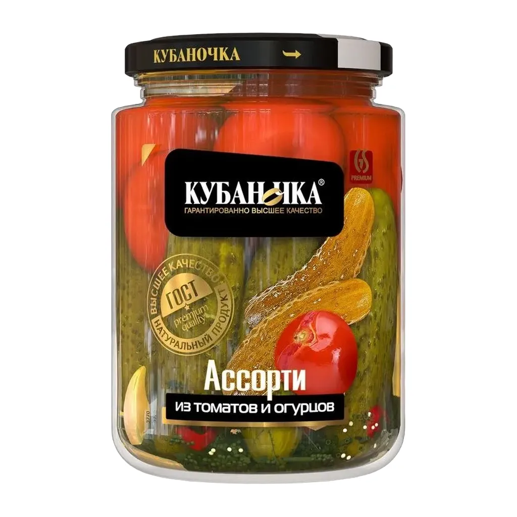 Кубаночка ассорти овощное 720грПредставляем вашему вниманию уникальную кубаночку Ассорти из томатов и огурцов! Этот набор из четырех банок весом 720 грамм станет настоящим удовольствием для любителей овощных консервов.Консервы изготовлены из свежих огурцов и томатов, которые были тщательно отобраны и подготовлены к производству. Секрет этого вкусного ассорти заключается в использовании натурального уксуса 9% и специй, таких как семена горчицы. Это делает каждый кусочек по-настоящему ароматным и неповторимым.Кубаночка Ассорти из томатов и огурцов - это не только вкусно, но и полезно! Эти консервы содержат много витаминов и минералов, которые необходимы организму для поддержания здоровья и энергии.