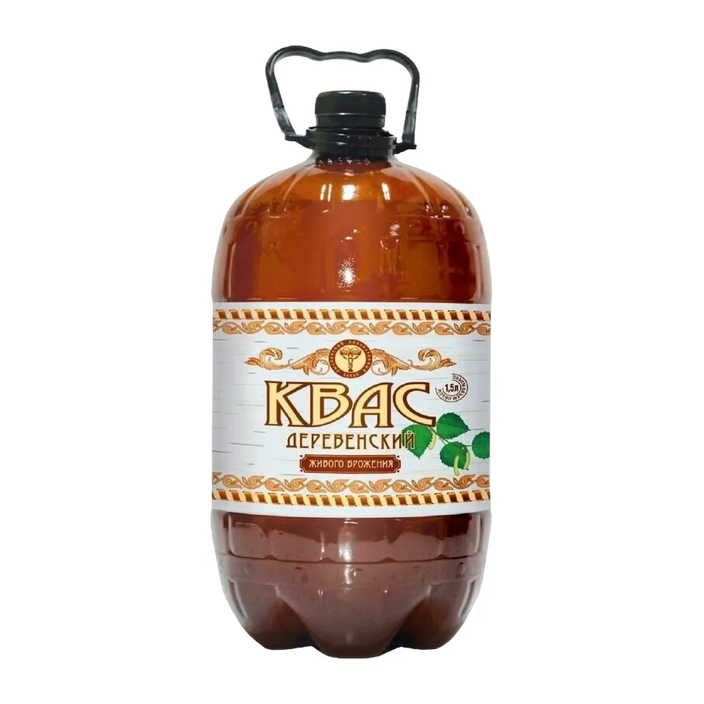 Квас Лысковский пивоваренный завод Деревенский светлый фильтрованный пастеризованный 1.5 л