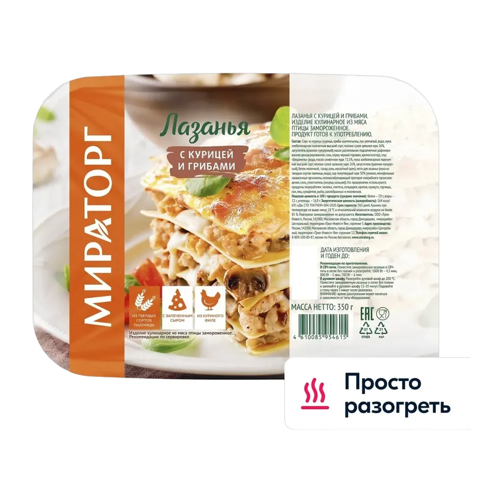 Лазанья с курицей Мираторг 350г