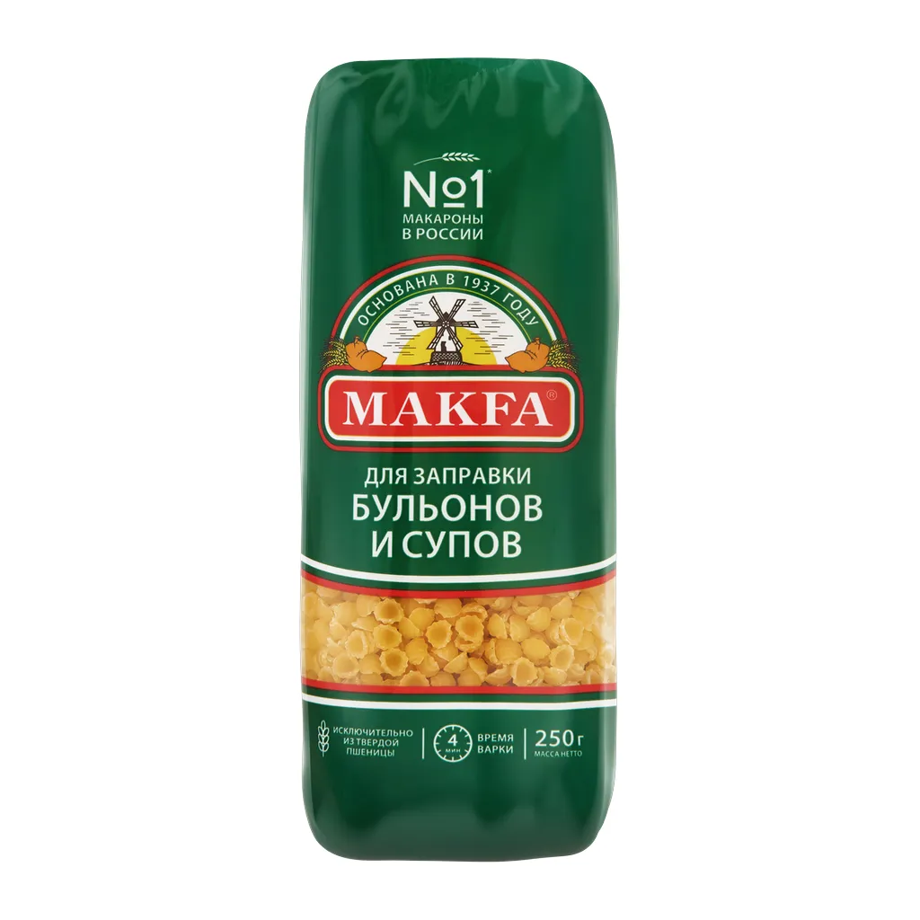 Макароны для заправки бульонов и супов MAKFA Ракушечки гладкие, 250г