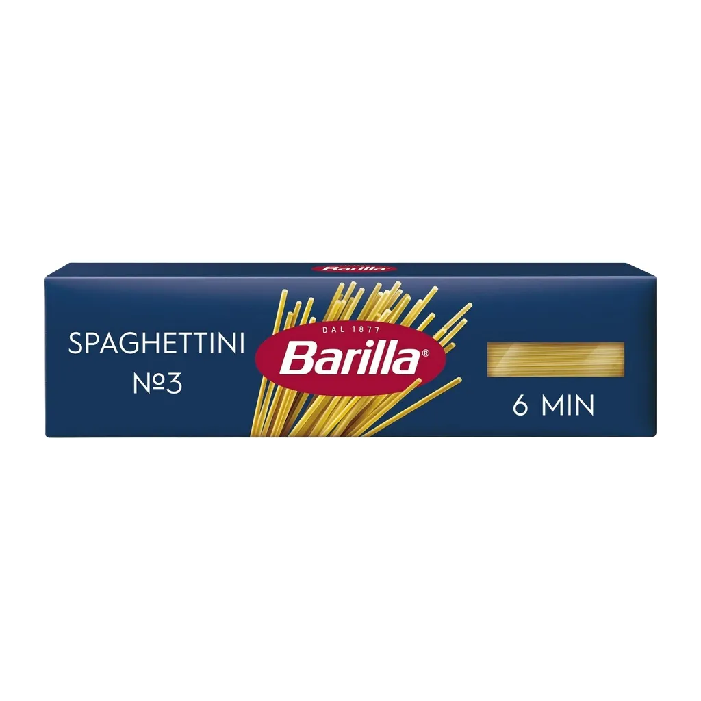 Макароны Barilla Спагеттини № 3 – одна из разновидностей длинной пасты родом из солнечной Италии. Их можно назвать младшими братьями традиционных спагетти, так как они более тонкие и изящные. Как и другая классическая паста, Barilla Spaghettini № 3 отлично сочетаются с мясными, овощными и сливочными соусами и, конечно же, тёртым сыром. Макароны производятся из высококачественной муки из твёрдых сортов пшеницы и на вкус идеальны сами по себе. В процессе приготовления паста не теряет форму, не разваривается и не слипается, радуя не только изысканным вкусом, но и аппетитным видом.