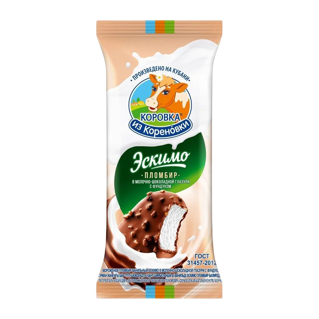 Мороженое пломбир Коровка из Кореновки в молочно-шоколадной глазури с фундуком эскимо 15% 70г