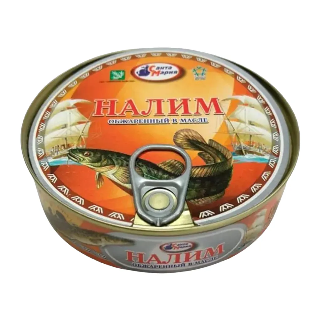 Налим обжаренный в масле. Налим полезен для сердечно-сосудистой системы, его жирные кислоты: нормализуют уровень холестерина; убирают холестериновые бляшки на стенках сосудов; предотвращают развитие ишемической болезни сердца и атеросклероза. Состав: рыба налим, масло растительное, соль, мука пшеничная.