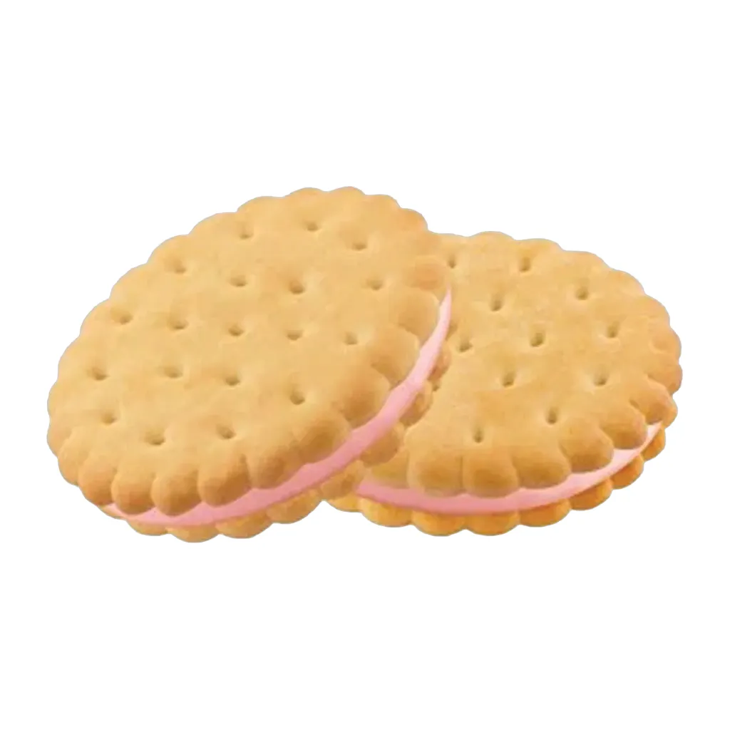 Рассыпчатое затяжное печенье с нежной кремово-клубничной прослойкой.
