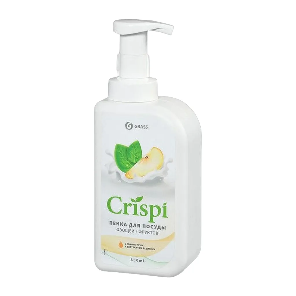 Средство для мытья посуды CRISPI пенка с ценным маслом белого хлопка.Эффективно даже в холодной водеЭкономичное, 550 мл пенки = 1100 мл обычного средстваПодходит для мытья фруктов и овощейУникальный дизайн упаковки для любой кухниЭкстракт базилика и сок груши сохраняет молодость ваших рукНе содержит красителей, состоит на 99% из растительных ингредиентовСостав: ≥30% вода; ≥5%, но <15% анионные и неионогенные ПАВ растительного происхождения; <5%: амфотерные ПАВ растительного происхождения, кокогликозид, глицерилолеат, хлорид натрия, лимонная кислота, экстракт семян хлопка, ароматизирующая добавка, консервант.Способ применения: Нанести небольшое количество средства на губку (посуду, овощи, фрукты), вымыть пенным составом, смыть водой.Объем: 550 мл.рН: 7Срок годности: 24 мес.