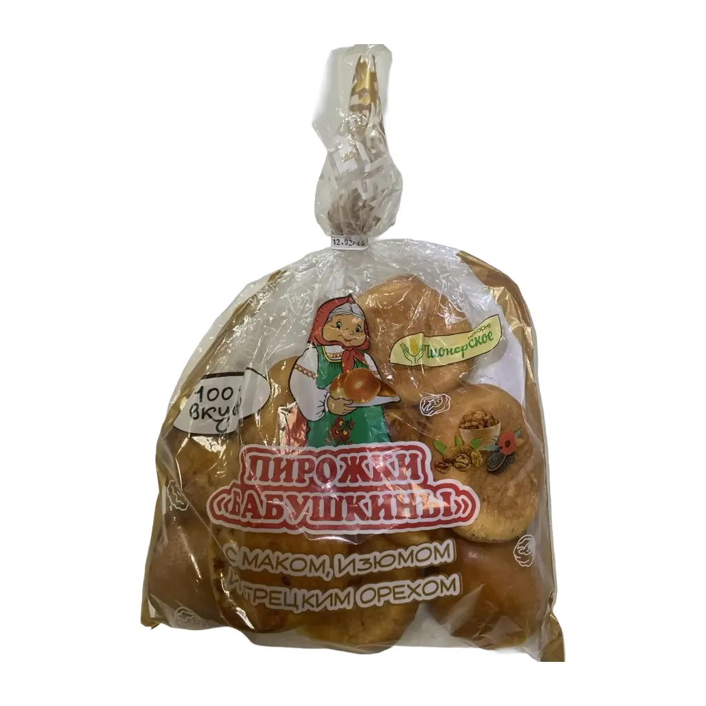 Пирожки Бабушкины с маком изюмом грецким орехом 390г ПУФ Пионерское