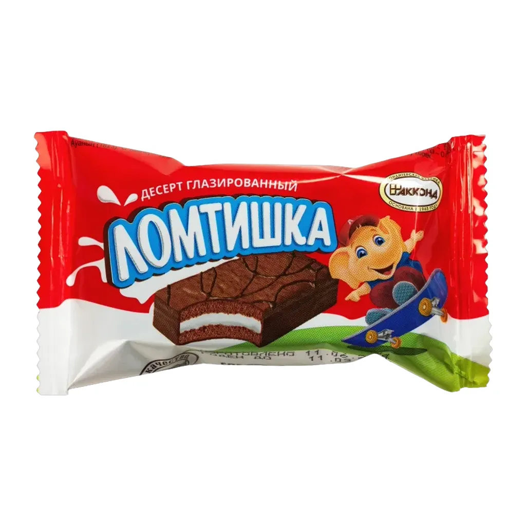 Условия храненияПри температуре от +5 до +20 и относительной влажности воздуха не более 75%. Не подвергать воздействию прямого солнечного светаСоставсахар, продукты яичные, жир растительный, мука пшеничная, патока, сыворотка сухая молочная, какао тертое, сухое обезжиренное молоко, какао порошок, влагоудерживающие агенты - сорбитовый сироп, глицерин; консервант - сорбат калия, соль, разрыхлитель - гидрокарбонат натрия, эмульгатор - соевый лецитин, регулятор кислотности - кислота лимонная, ароматизатор - ваниль, антиокислители - аскорбиновая кислота, альфа-Токоферол. Может содержать следы орехов, арахиса, кунжута, диоксида серы.