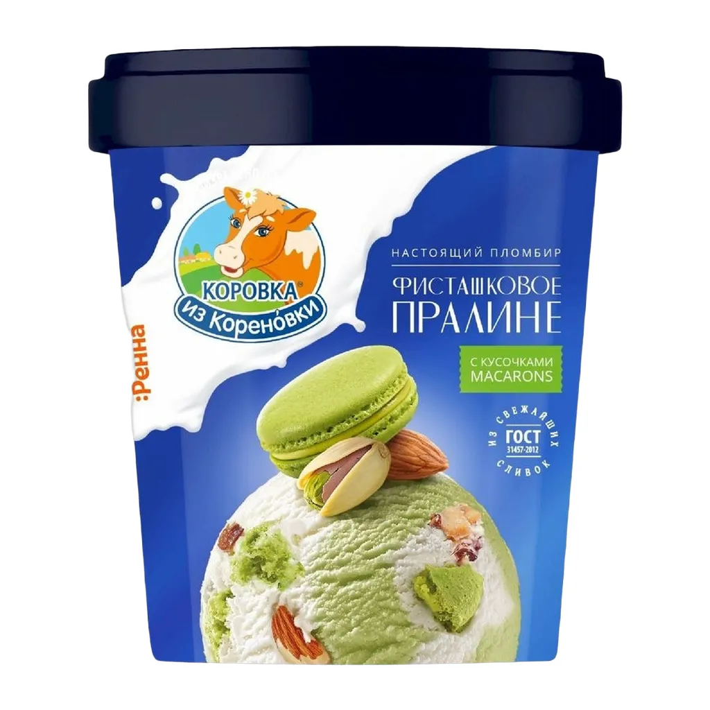 Пломбир Коровка Из Кореновки миндальный и фисташковый с кусочками печенья 300г