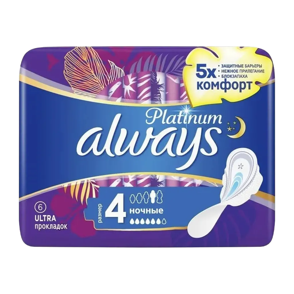 Прокладки Always Platinum Ultra ночные 6 капель 4 размер