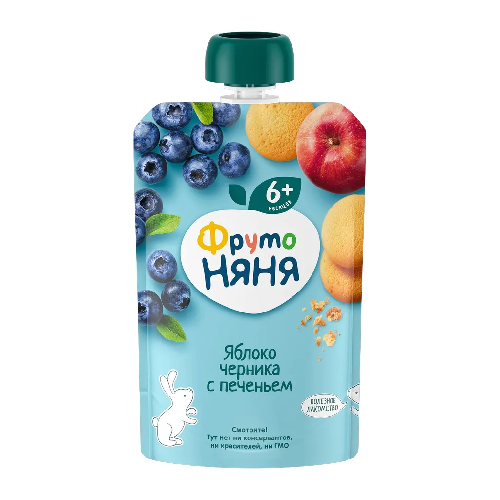 Пюре ФрутоНяня яблоко черника с печеньем 90г