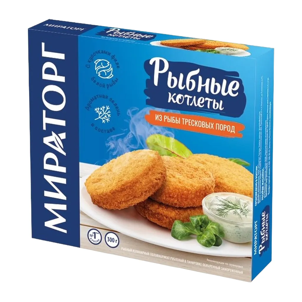 Рыбные котлеты Мираторг из фарша тресковых пород замороженные 300г