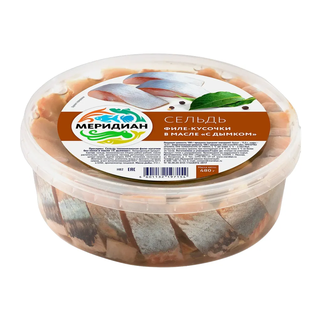 Сельдь Меридиан в масле с дымком филе кусочки 480г