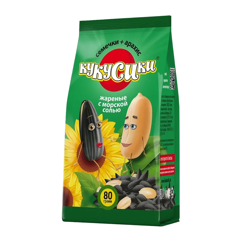 Для тех, кто не хочет выбирать, мы бережно обжарили отборные семечки и ядра арахиса – и смешали их в одной пачке. Это тот случай, когда вместе вкуснее!"Кукусики" — популярный бренд на рынке жареных снеков и кондитерской продукции.